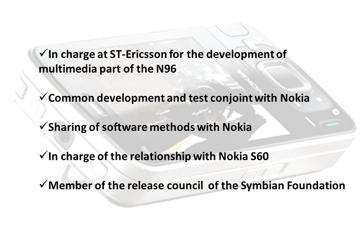 Member of Symbian Foundation and ST-Ericsson’s representative to the release council